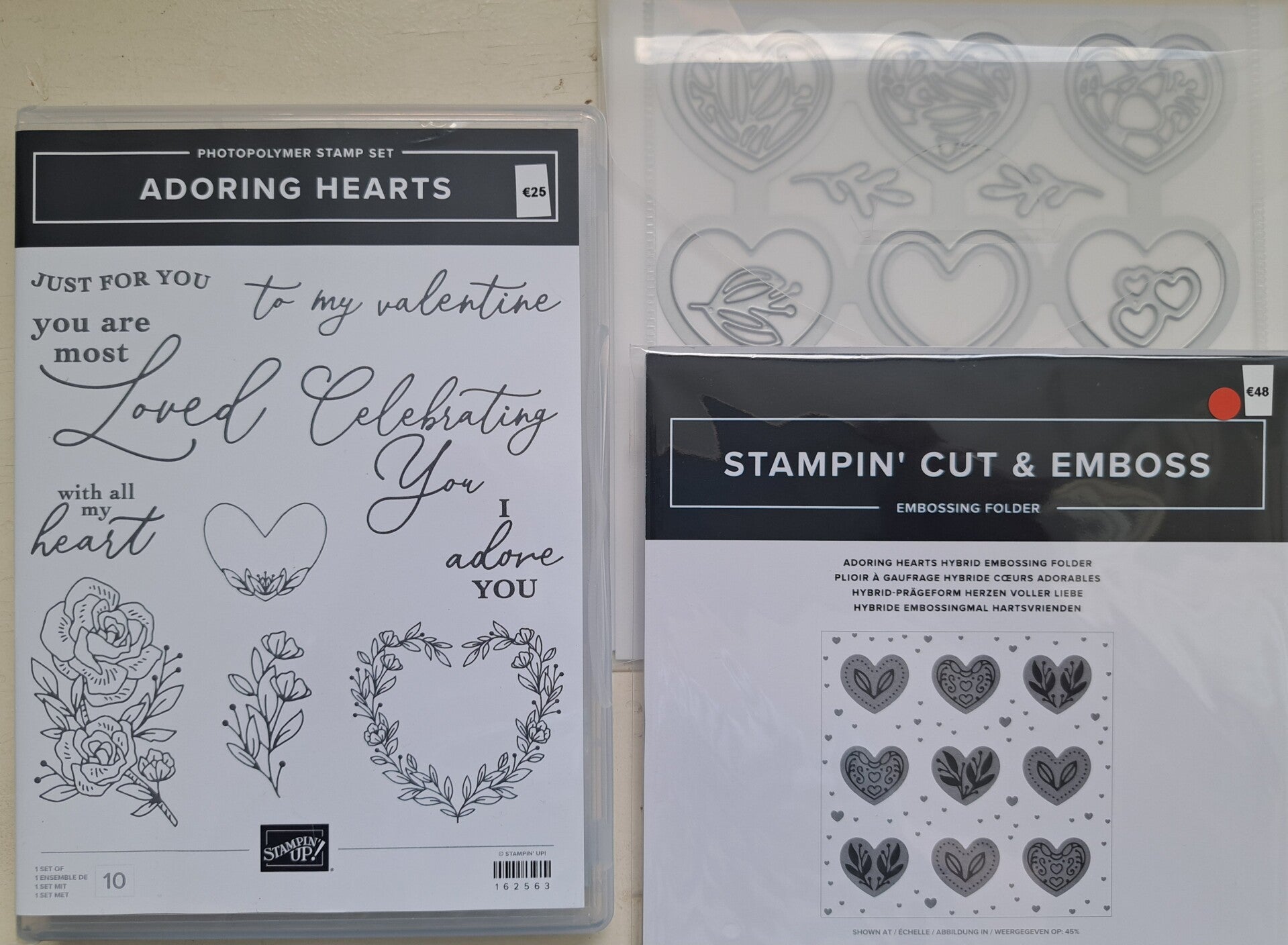 Adoring Hearts stempelset met bijpassende stansen én Hybrid embossing folder